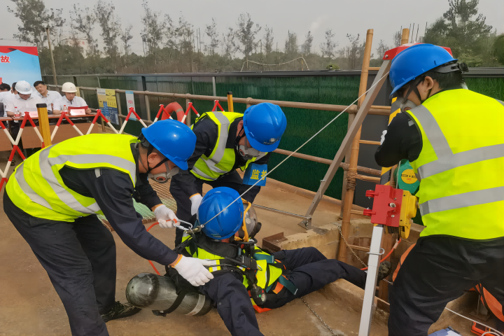 本次演練分為生產(chǎn)車間藥劑池清理作業(yè)事故應(yīng)急預(yù)案演練、危險化學(xué)品甲醇泄漏事故應(yīng)急救援演練、工業(yè)廢水超量應(yīng)急預(yù)案演練和轉(zhuǎn)輸口水質(zhì)超標(biāo)應(yīng)急管控演練等四個科目,分別模擬藥池清堵作業(yè)人員中毒、甲醇運(yùn)輸車藥劑泄漏、工業(yè)廢水突增超量和轉(zhuǎn)輸口水質(zhì)超標(biāo)事件。演練按照預(yù)案開展應(yīng)急救援和調(diào)度處置操作,最終圓滿完成各項任務(wù),達(dá)到了預(yù)期效果。