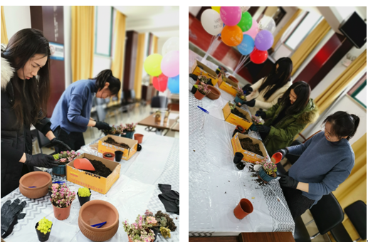 為迎接即將到來的2019年“三八”國際勞動?jì)D女節(jié),調(diào)動女職工工作積極性,豐富女職工生活,使廣大女職工過上一個健康、和諧、快樂的“三八”婦女節(jié)。近日,恒通公司全體女職工與“小鮮肉”們來了一場“神秘”約會,擁抱春的“肉肉”,感受春的氣息。 女職工們擼起袖子,帶上手套,跟著園藝師從灌裝填土、多肉種植、面層鋪石到灑水定型,一步步完成多肉植物DIY制作,并將其帶回辦公室。每一個多肉盆栽“成品”形態(tài)各異,蠢萌可愛。