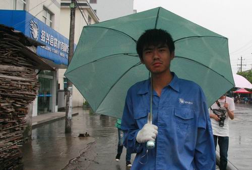 來到一個(gè)弄堂口,小吳說,你們不用跟我進(jìn)來,里面只有一只表,等會(huì)還要原來返回。不一會(huì),他回來了。因?yàn)榕糜珠L又窄,小吳只好撐下傘鉆出來。