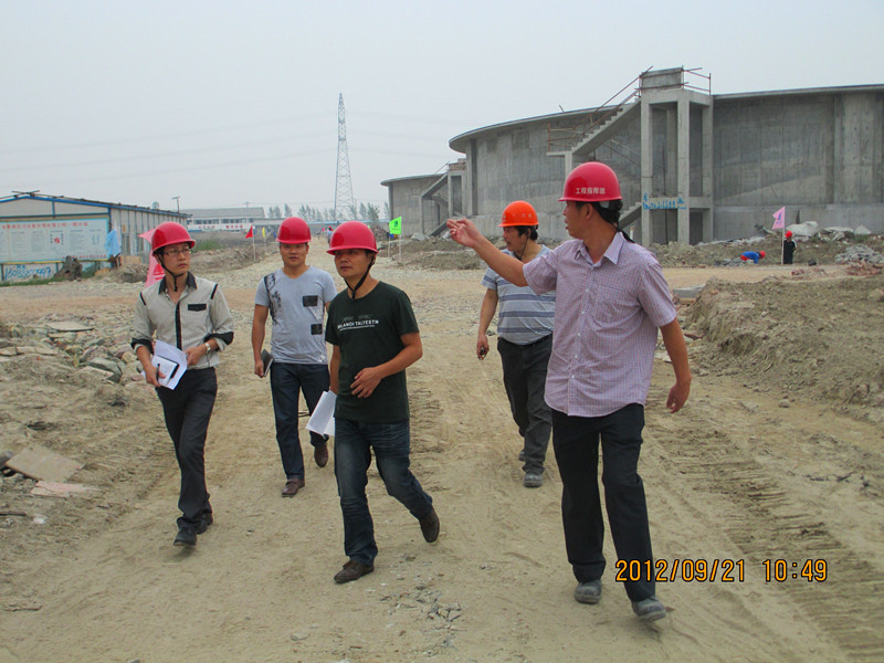 圖為現場檢查濱海印染產業(yè)集聚區(qū)污水集中預處理工地