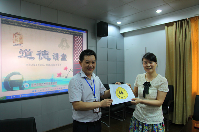 本次“道德講堂”共分聽歌曲、學(xué)模范、誦經(jīng)典、發(fā)善心、送吉祥、向“德”字鞠躬敬禮等6個環(huán)節(jié)。講堂上,大家一起聆聽了《公民道德歌》,觀看了感動中國人物林俊德院士事跡報告,學(xué)習(xí)了道德經(jīng)典語句“德在人先,利居人后”,并結(jié)合自身實際,分別暢談了對道德的感悟。本期講堂,還為大家準(zhǔn)備了一個“笑臉”,希望大家在工作中、生活中保持微笑,用笑臉迎接工作、迎接生活、迎接身邊每一個人。最后,講堂在大家向“德”字鞠躬敬禮中落下帷幕,使干部職工接受了一次道德的感化與洗禮。