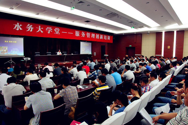 6月15日,集團(tuán)公司第五期“水務(wù)大學(xué)堂”在縣委黨校一樓報告廳舉行。浙江大學(xué)人文學(xué)院院長、博士生導(dǎo)師、浙江大學(xué)語言與認(rèn)知研究中心主任黃華新教授應(yīng)邀講授一期“服務(wù)管理創(chuàng)新”課程。集團(tuán)系統(tǒng)內(nèi)160余名中層副職以上領(lǐng)導(dǎo)干部參加。