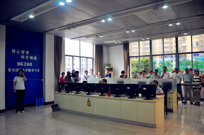 參觀者們在供水公司調(diào)度中心聽取全區(qū)供水調(diào)度情況匯報(bào)