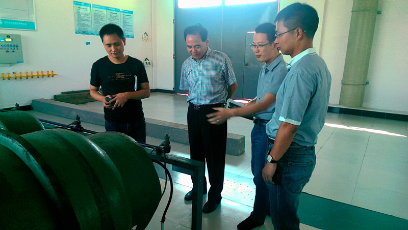 圖為倪阿泉董事長在供水公司鳳凰山泵站檢查工作
