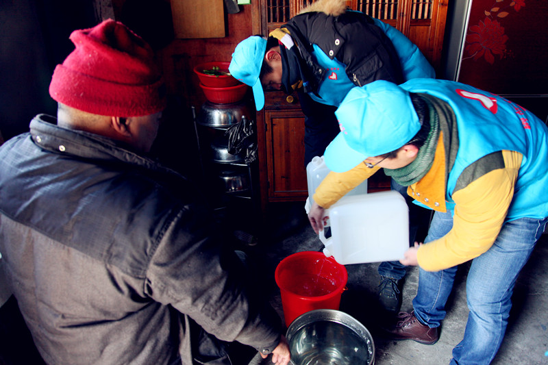 受這波世紀(jì)寒潮及雨雪冰凍天氣影響,氣溫低至零下8-10度,使用戶家里的一些自來水水管被冰凍,山區(qū)自來水管比平原地帶更容易受凍。1月25日上午,柯橋水務(wù)集團(tuán)青年志愿者們冒著寒冷,上門為蘭亭、漓渚、楊汛橋、夏履等鎮(zhèn)停水的27個(gè)山區(qū)自然村一些行動(dòng)不便的孤寡老人送去了基本的生活飲用水,解決他們的燃眉之急。
