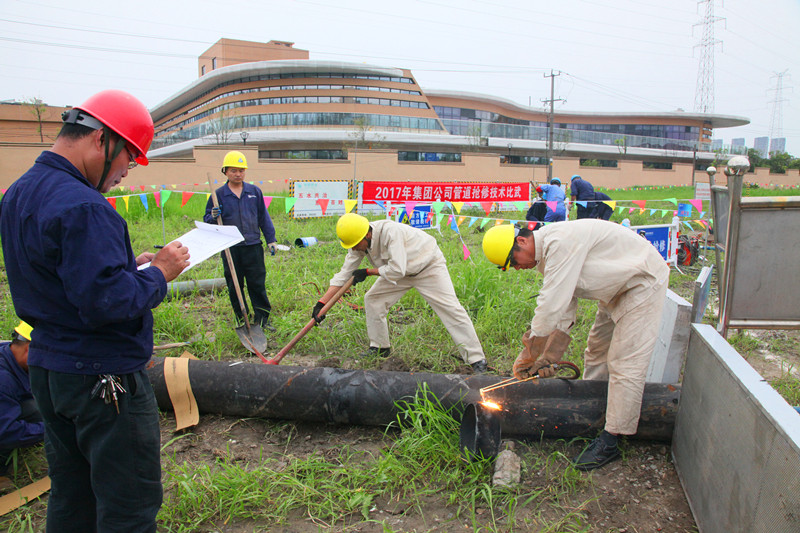 下午2時整,隨著裁判長一聲令下,技術(shù)比武活動拉開了序幕。此次比武采取現(xiàn)場實(shí)際操作的形式,模擬DN300mm螺旋鋼管,因地面沉降導(dǎo)致焊縫在鐘表位置4點(diǎn)到7點(diǎn)段開裂,要求參賽小組在規(guī)定時間內(nèi)用鋼板鑲嵌裂縫后手工焊條電弧焊焊接修復(fù)。比武現(xiàn)場氣氛緊張激烈,參賽人員全神貫注、你追我趕,經(jīng)過一個半小時的奮力比拼,各參賽小組依次完成比武內(nèi)容。隨后,裁判組根據(jù)安全防護(hù)、文明施工、考核時限、焊前準(zhǔn)備、焊縫質(zhì)量等方面的評分標(biāo)準(zhǔn)對各參賽小組的比武過程和最終結(jié)果進(jìn)行評分,最終產(chǎn)生一等獎1名、并列二等獎2名。