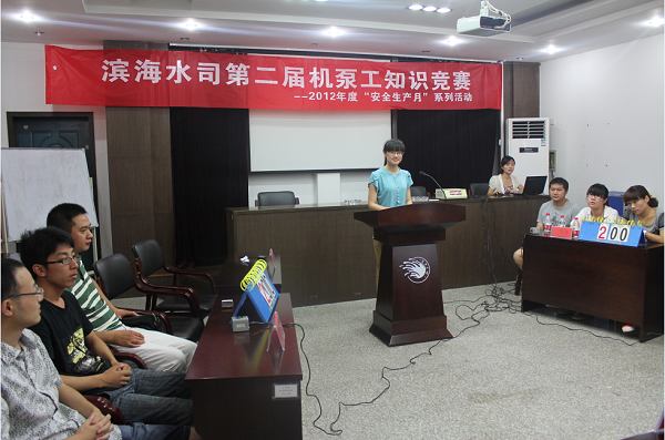 7月20日上午,濱海水司第二屆高配機(jī)泵工知識競賽在三樓會議室落下帷幕,經(jīng)過激烈的角逐,迎陽閘取水泵房代表隊(duì)獲得優(yōu)勝獎,送水泵房代表隊(duì)及新三江取水泵房代表隊(duì)獲得鼓勵獎。
