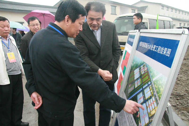 上午,由縣政協(xié)主席孟柏干帶隊(duì)的視察組冒雨視察污水集中預(yù)處理工程(一期),集團(tuán)董事長倪阿泉陪同。