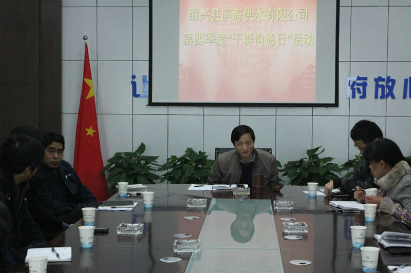 濱海水司第四季度“干群溝通日”活動于12月13日在三樓會議室舉行,本次活動圍繞基層班組規(guī)范化建設(shè)這一主題開展座談。公司領(lǐng)導(dǎo)、各部室負(fù)責(zé)人、班組長共19人參加座談。座談會上,與會人員就如何加強(qiáng)班組管理,更好地發(fā)揮基層班組作用,班組工作中的熱點難點問題進(jìn)行“面對面”的溝通交流。