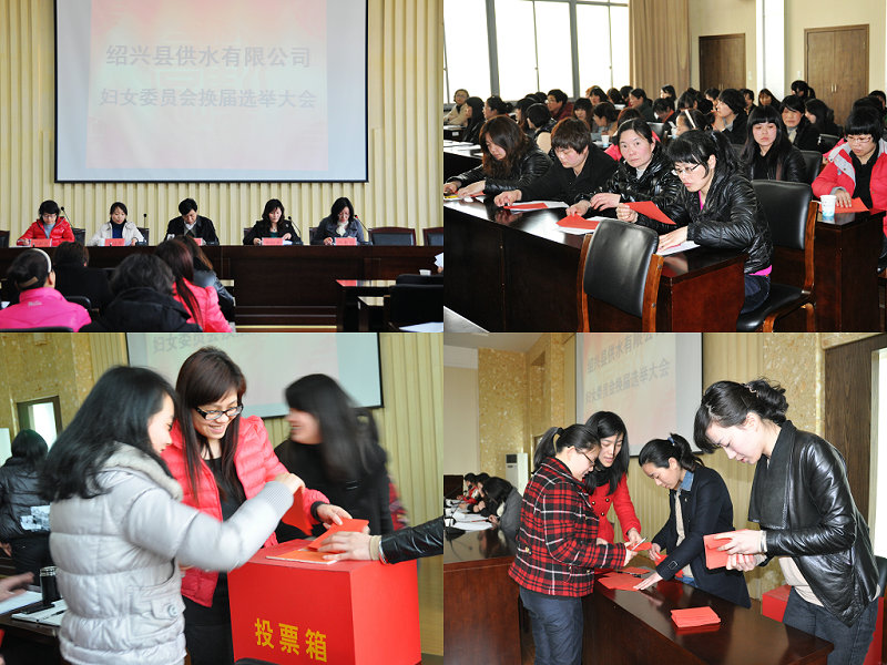 供水公司婦委會(huì)于2008年8月成立,在近4年的時(shí)間里,婦委會(huì)緊緊圍繞公司中心工作,切實(shí)履行職責(zé),為公司和諧健康發(fā)展起到了積極的推動(dòng)作用。本次會(huì)議,供水公司婦委會(huì)主任酈紅英代表第一屆婦委會(huì)作了工作報(bào)告,按照組織原則和程序,舉手表決通過了《紹興縣供水有限公司婦女委員會(huì)換屆選舉辦法》。同時(shí),采用無記名差額選舉方式,投票選出新一屆婦委會(huì)委員,酈紅英連任為新一屆婦委會(huì)主任,并代表新一屆委員向全體女職工代表作表態(tài)發(fā)言。