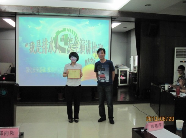 參賽選手在講的同時以PPT為背景為大家展示演講內(nèi)容,觀點(diǎn)鮮明,立意深刻,語言表達(dá)自然流暢,本次比賽結(jié)合“我是排水人”主題教育,以“強(qiáng)化安全基礎(chǔ)、推動安全發(fā)展”為線索,體現(xiàn)了排水人積極向上的精神風(fēng)貌。最后來自柯海分公司的林佳獲得第一名,由鄭書記親自頒獎。
