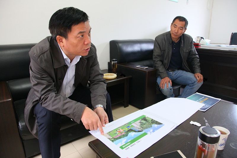 周董事長與官橋村委主任黃湯榮研究該村規(guī)劃設(shè)計方案