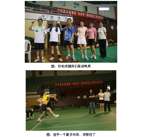 為宣揚(yáng)企業(yè)文化,提倡“快樂工作、健康工作”,增進(jìn)青年職工的團(tuán)隊(duì)協(xié)作意識,增進(jìn)同事之間的默契度,拉近跨部門業(yè)務(wù)的操作距離,2010年5月22日,水務(wù)集團(tuán)團(tuán)委在紹興市城東體育館舉辦了第四屆“水務(wù)杯”羽毛球比賽。