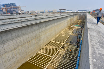 投資5億元的20萬(wàn)噸/日集中預(yù)處理二期工程自2017年4月動(dòng)工以來(lái),目前全面進(jìn)入設(shè)備安裝階段。期間,實(shí)行每周制定施工計(jì)劃、每周督查制,現(xiàn)設(shè)備安裝進(jìn)度良好,至2018年3月中旬,鼓風(fēng)機(jī)、吸刮泥機(jī)等關(guān)鍵設(shè)備安裝到位,完成安裝工程量的60%以上,預(yù)計(jì)4月底可安裝完畢,5月底完成設(shè)備單、聯(lián)動(dòng)調(diào)試,6月底如期投運(yùn),形成集聚區(qū)40萬(wàn)噸/日集中預(yù)處理能力,屆時(shí)可全面滿(mǎn)足集聚區(qū)一、二、三期60家企業(yè)約35萬(wàn)噸/日的污水排放需求。